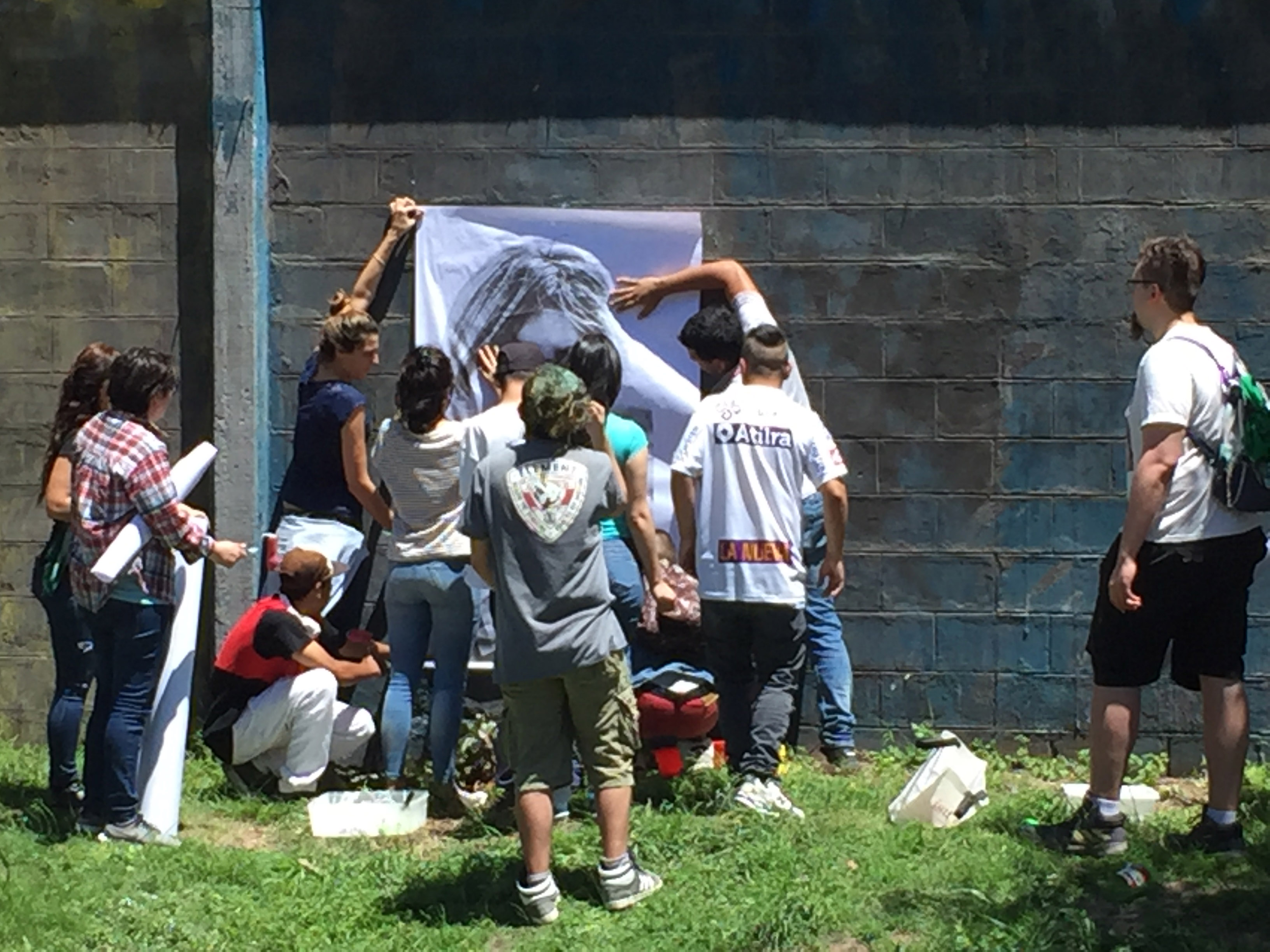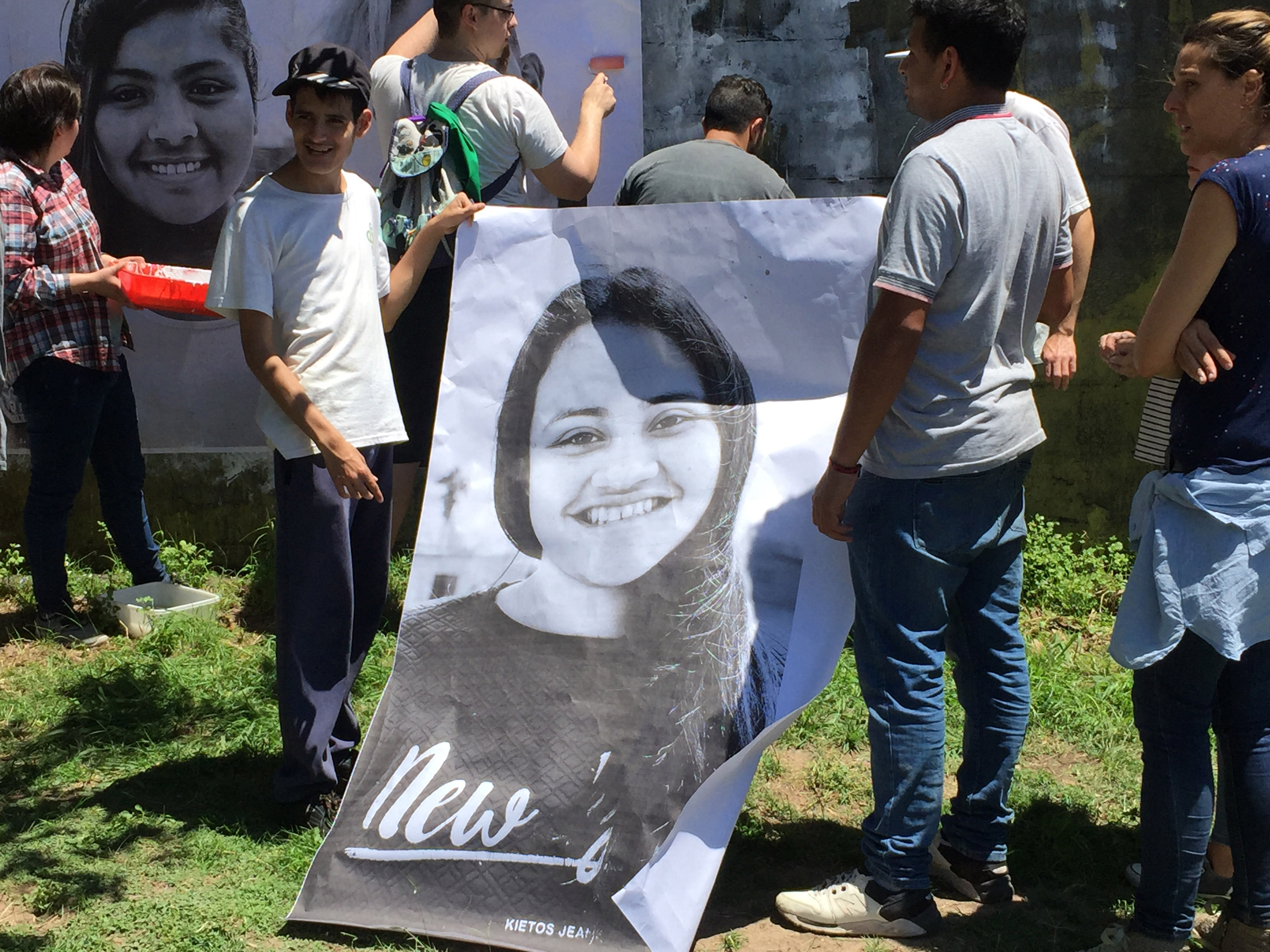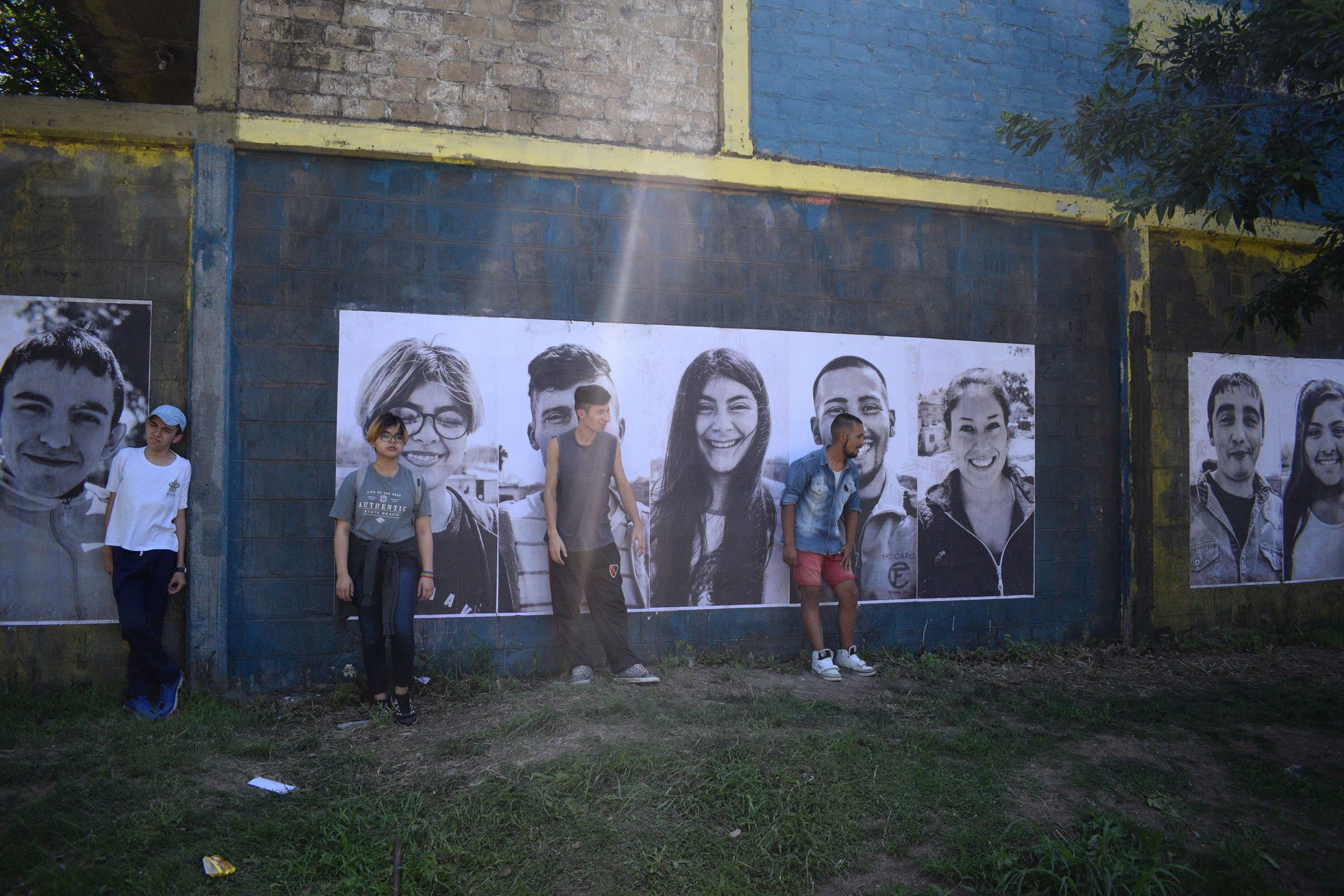 Primero buscaron el tamaño en el que querían imprimir las imágenes para la intervención y después tomaron las fotos en el distrito. "Las sacamos en el mismo lugar para que pareciera que es una foto entera. Una vez que teníamos las fotos encontramos una fábrica que da a la avenida, donde circula mucha gente. La idea es que la gente al ver los retratos se emocione o se pregunte por qué hicimos esta intervención", expresó Micaela.